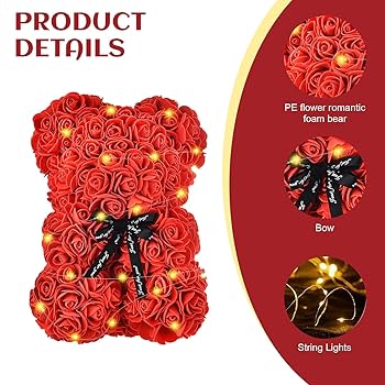 Este adorable oso está cuidadosamente elaborado a mano con gamuza plástica (foamiran), un material decorativo suave y agradable al tacto. Su base de espuma de poliestireno le da estabilidad y forma, mientras que las flores artificiales crean un diseño encantador inspirado en el clásico "Teddy Bear". Un detalle romántico perfecto para sorprender en cualquier ocasión especial.